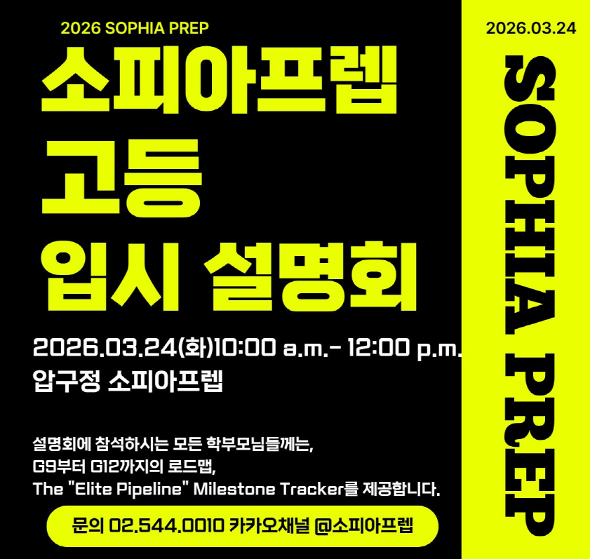 ■ 2026 입시 정책 변화와 실제 합격 데이터를 바탕으로  향후 입시를 전략적으로 준비하실 수 있는 소피아프렙의 고등 입시 설명회에 학부모님들을 모십니다.